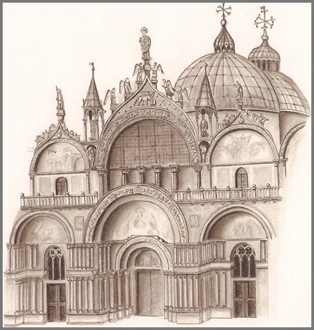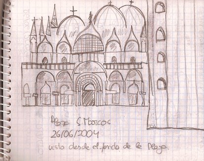 En venecia me compré por casualidad una pequeña libreta y un lápiz, dónde en los ratos libre me dió por dibujar algún garabato. En la plaza San Marcos dibujé el primer garabato.