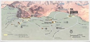 Cuando llegamos al parque nacional hemos de diferenciar lo que ellos llaman el North Rim y el South Rim. Simplemente se trata del lado norte del Cañón o del lado Sur. El más visitado es el lado sur que es al que se accede por esta ruta. Este es un mapa del parque… (pulsa sobre él para agrandarlo)